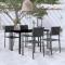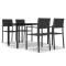 Ensemble à manger de jardin 5 pcs NoirCet ensemble de salle à manger de jardin est une combinaison parfaite de style et de fonctionnalité et est destiné à être le point de mire de votre jardin, balcon ou patio. Cet ensemble de meubles de patio est fabriqué à partir d'un cadre en acier enduit de poudre, ce qui le rend robuste et stable pour une utilisation quotidienne à l'extérieur. Le dessus de table en verre lisse est facile à nettoyer avec un chiffon humide et parfait pour placer les repas, les boissons et autres articles décoratifs. Les chaises à dîner d'extérieur légères sont fabriquées en plastique, ce qui les rend faciles à nettoyer et à déplacer. Les chaises de salle à manger de jardin, avec leur design d'aspect de rotin, ajoutent une touche de charme naturel à votre espace de vie extérieur ! Remarque : afin de prolonger la durée de vie des meubles d'extérieur, nous vous recommandons de les protéger avec une housse imperméable. Maximum 110 kg par siège.