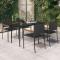 Ensemble à manger de jardin 5 pcs NoirCet élégant ensemble de salle à manger de jardin est destiné à être le point de mire de votre jardin ou patio ! C'est un excellent choix pour les repas en plein air ou pour vous détendre dans l'espace extérieur ! Les cadres en acier enduit de poudre rendent la table et les chaises robustes et stables pour une utilisation quotidienne en extérieur. Grâce à la résine tressée résistante à l'eau, les chaises sont faciles à nettoyer et résistantes à l'usure. Le dessus de table en verre lisse est facile à nettoyer avec un chiffon humide et parfait pour placer les repas, les boissons et autres articles décoratifs. Remarque : afin de prolonger la durée de vie des meubles d'extérieur, nous vous recommandons de les protéger avec une housse imperméable.