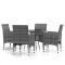 Ensemble à manger de jardin 5 pcs Résine tressée GrisProfitez d'un bon repas ou d'un thé l'après-midi dans votre espace extérieur avec cet ensemble de salle à manger de jardin ! Ayant un design élégant, il deviendra le point central de votre jardin et de votre terrasse ! Avec un cadre en acier enduit de poudre enveloppé en résine tressée, cet ensemble repas d'extérieur est durable. Le dessus de table est en verre trempé, ce qui le rend facile à nettoyer. De plus, les coussins bien rembourrés offrent un confort ultime pendant votre temps d'assise. Remarque : afin de prolonger la durée de vie des meubles d'extérieur, nous vous recommandons de les protéger avec une housse imperméable. Maximum 110 kg par siège. Soyez conscient du risque de feu ouvert et d'autres sources de forte chaleur à proximité de l'appareil.
