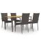 Ensemble à manger de jardin 5 pcs Résine tressée MarronCréez une esthétique convaincante et uniforme dans votre espace extérieur avec cet ensemble de salle à manger de jardin ! La table de salle à manger est fabriquée en bois d'acacia massif et en acier durable, ce qui la rend robuste et stable. La surface à finition à l'huile la rend également adaptée pour une utilisation en extérieur. Dotées d'un cadre en acier recouvert de résine tressée résistante aux intempéries, les chaises sont robustes et faciles à nettoyer. Ces chaises de jardin peuvent être empilées pour économiser de l'espace lorsqu'elles ne sont pas utilisées. Remarque : afin de prolonger la durée de vie des meubles d'extérieur, nous vous recommandons de les protéger avec une housse imperméable. Maximum 110 kg par siège.