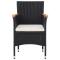 Ensemble à manger de jardin 5 pcs Résine tressée NoirProfitez d'un bon repas ou d'un thé l'après-midi dans votre espace extérieur avec cet ensemble de salle à manger de jardin ! Ayant un design élégant, il deviendra le point central de votre jardin et de votre terrasse ! Avec un cadre en acier enduit de poudre enveloppé en résine tressée, cet ensemble repas d'extérieur est durable. Le dessus de table est fait de bois d'acacia massif, un bois franc avec des grains denses. De plus, les coussins bien rembourrés offrent un confort ultime pendant votre temps d'assise. Remarque : afin de prolonger la durée de vie des meubles d'extérieur, nous vous recommandons de les protéger avec une housse imperméable. Maximum 110 kg par siège. Soyez conscient du risque de feu ouvert et d'autres sources de forte chaleur à proximité de l'appareil.