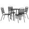 Ensemble à manger de jardin 5 pcs anthracite acierCet ensemble de salle à manger de jardin tendance, au design élégant et contemporain, est un choix parfait pour vous détendre dans votre jardin. Matériau robuste : l'acier est un matériau exceptionnellement dur et solide. Il offre robustesse et stabilité. Le revêtement par poudre et le revêtement électronique de l'acier créent une couche protectrice contre l'usure et la corrosion.Cadre stable : le cadre en acier enduit de poudre et e-coated assure la robustesse et la stabilité de l'ensemble de salle à manger.Fonction empilable : les chaises de salle à manger sont empilables pour économiser de l'espace lorsqu'elles ne sont pas utilisées.Table pratique : le dessus robuste de la table à manger est parfait pour placer des repas, des boissons et d'autres objets décoratifs.Design à lattes : la table à manger de jardin avec un design à lattes est simple et intemporelle et convient aux balcons, porches, jardins, terrasses, etc. Remarque :Pour que vos meubles d'extérieur restent beaux, nous vous recommandons de les protéger avec une housse imperméable. Maximum 110 kg par siège.
