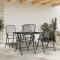 Ensemble à manger de jardin 5 pcs anthracite métal mailleProfitez d'un bon repas ou d'un thé l'après-midi dans votre espace extérieur avec cet ensemble de salle à manger de jardin ! Ayant un design élégant, il deviendra le point central de votre jardin et de votre terrasse ! Cadre robuste : le cadre en métal rend cet ensemble de meubles de jardin robuste et durable, offrant un service à vie.Conception en maille : cet ensemble de salle à manger, avec son design en maille, peut efficacement éviter l'accumulation d'eau, ajoutant une apparence élégante à votre espace de vie extérieur.Dessus de table pratique : le dessus robuste de la table de jardin est parfait pour placer les repas, les boissons et d'autres objets décoratifs.Facile à déplacer : ces chaises à manger de jardin sont pliables pour gagner de la place lorsqu'elles ne sont pas utilisées. Vous pouvez facilement les transporter avec vous lors de vos sorties en plein air.Dossier réglable : ces chaises inclinables ont des dossiers qui s'inclinent dans 7 réglages, de sorte que vous puissiez toujours trouver la position la plus confortable. Bon à savoir :Pour que vos meubles d'extérieur restent beaux, nous vous recommandons de les protéger avec une housse imperméable.