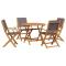 Ensemble à manger de jardin 5 pcs anthracite tissu bois massifCet ensemble de salle à manger de jardin est un excellent choix pour les repas en plein air ou pour vous détendre dans le jardin, dans l'arrière-cour ou sur la terrasse. Robuste et stable : le bois d'acacia massif est connu pour sa solidité et sa durabilité. Ses couleurs variées et ses grains uniques lui confèrent un aspect attrayant. Sa stabilité et sa résistance aux intempéries en font un matériau idéal pour la fabrication de meubles d'intérieur et d'extérieur. Conception pratique : la main courante en bois, pratique et plate, vous permet de poser vos mains dessus tout en profitant d'un moment en plein air. Dessus de table robuste : la table d'extérieur offre un excellent support pour accueillir vos boissons, collations, corbeilles de fruits et vos décorations préférées. Design pliable : la table et les chaises de salle à manger d'extérieur peuvent être facilement repliées lorsqu'elles ne sont pas utilisées pour faciliter le rangement et le transport. Bon à savoir : Pour que vos meubles d'extérieur restent beaux, nous vous recommandons de les protéger avec une housse imperméable. Maximum 110 kg par siège.