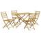 Ensemble à manger de jardin 5 pcs bambouCet ensemble de salle à manger de jardin, au design élégant et contemporain, sera un excellent choix pour manger ou vous détendre dans le jardin. Durable : en tant que matériau naturel, le bambou offre une bonne respirabilité et une faible odeur. Ces qualités rendent l'ensemble à manger de jardin durable, résistant à l'eau et de longue durée.Design pliable : la table et les chaises de salle à manger d'extérieur peuvent être facilement repliées lorsqu'elles ne sont pas utilisées pour faciliter le rangement et le transport.Dessus stable : le dessus stable de la table de jardin est idéal pour placer votre boisson ou toute autre nécessité dont vous avez besoin à portée de main.Une expérience d'assise confortable : dotée d'un dossier, la chaise d'extérieur vous offre un confort optimal. Bon à savoir :Pour que vos meubles d'extérieur restent beaux, nous vous recommandons de les protéger avec une housse imperméable. Maximum 110 kg par siège.