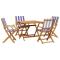 Ensemble à manger de jardin 5 pcs bleu blanc tissu bois massif – OBJET NON VENDU – VENTE TERMINÉE