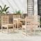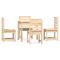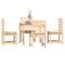 Ensemble à manger de jardin 5 pcs bois massif de pinCet ensemble à manger de jardin classique en bois est parfait pour une utilisation à l'extérieur et est conçu pour être le point central de votre jardin, terrasse ou patio, etc. Bois de pin massif : l'ensemble de salle à manger est fabriqué en bois de pin massif. Le bois de pin massif est un matériau naturel magnifique. Le bois de pin a un grain droit et les noeuds donnent au matériau son aspect caractéristique et rustique.Dessus de table pratique : cette table à manger vous offre un dessus de table solide. Vous pouvez placer vos collations, boissons et n'importe laquelle de vos décorations préférées.Expérience d'assise confortable : l'assise et le dossier à lattes de la chaise à manger offrent un excellent soutien.Nombreuses applications : l'ensemble à manger d'extérieur au design simple et intemporel convient aux balcons, jardins, terrasses, etc. Bon à savoir :Pour faciliter au maximum le montage, chaque produit est livré avec des instructions. Remarque :Pour que vos meubles d'extérieur restent beaux, nous vous recommandons de les protéger avec une housse imperméable. Maximum 110 kg par siège.