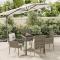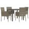 Ensemble à manger de jardin 5 pcs coussins gris résine tresséeCet ensemble de salle à manger de jardin tendance, au design élégant et contemporain, est un excellent choix pour manger ou vous détendre dans votre jardin. Matériau résistant aux intempéries : la résine tressée, également connue sous le nom de rotin poly, résiste aux intempéries et est facile à nettoyer. Elle reste belle à l'extérieur pendant une longue période. Elle offre une excellente qualité, commodité et un aspect esthétique.Cadre robuste : les cadres en acier enduit de poudre rendent l'ensemble de salle à manger d'extérieur robuste et stable pour une utilisation quotidienne à l'extérieur.Dessus de table pratique : le dessus lisse de la table de jardin est en verre trempé, facile à nettoyer avec un chiffon humide. De plus, le dessus robuste est parfait pour placer des repas, des boissons et d'autres objets décoratifs.Conception modulaire : l'ensemble de salle à manger de jardin est flexible et facile à déplacer, vous pouvez donc le combiner avec d'autres segments modulaires dans la boutique en ligne pour créer vos propres configurations d'ensemble de salle à manger de jardin !Expérience d'assise confortable : le dossier ajoute un confort d'assise supplémentaire à la chaise de jardin. De plus, les coussins bien rembourrés vous permettent de vous asseoir confortablement. Bon à savoir :Pour faciliter au maximum le montage, chaque produit est livré avec des instructions. Remarque :Pour que vos meubles d'extérieur restent beaux, nous vous recommandons de les protéger avec une housse imperméable. Maximum 110 kg par siège.