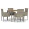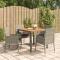 Ensemble à manger de jardin 5 pcs coussins gris résine tresséeCet ensemble de salle à manger de jardin tendance, au design élégant et contemporain, est un excellent choix pour manger ou vous détendre dans votre jardin. Matériau résistant aux intempéries : la résine tressée, également connue sous le nom de rotin poly, résiste aux intempéries et est facile à nettoyer. Elle reste belle à l'extérieur pendant une longue période. Elle offre une excellente qualité, commodité et un aspect esthétique.Cadre robuste : les cadres en acier enduit de poudre rendent l'ensemble de salle à manger d'extérieur robuste et stable pour une utilisation quotidienne à l'extérieur.Dessus de table pratique : le dessus de table en bois d'acacia massif est parfait pour placer des boissons, des aliments et des décorations. Il a une belle apparence et est facile à nettoyer.Conception modulaire : l'ensemble de salle à manger de jardin est flexible et facile à déplacer, vous pouvez donc le combiner avec d'autres segments modulaires dans la boutique en ligne pour créer vos propres configurations d'ensemble de salle à manger de jardin !Expérience d'assise confortable : le dossier ajoute un confort d'assise supplémentaire à la chaise de jardin. De plus, les coussins bien rembourrés vous permettent de vous asseoir confortablement. Bon à savoir :Pour faciliter au maximum le montage, chaque produit est livré avec des instructions. Remarque :Pour que vos meubles d'extérieur restent beaux, nous vous recommandons de les protéger avec une housse imperméable. Maximum 110 kg par siège.