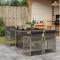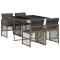 Ensemble à manger de jardin 5 pcs coussins gris résine tresséeCet ensemble de salle à manger de jardin est un excellent choix pour les repas en plein air ou pour vous détendre dans le jardin, l'arrière-cour ou le patio. Matériau durable : la résine tressée, également connue sous le nom de poly rotin, est un matériau synthétique solide et nécessitant peu d'entretien qui ressemble au rotin naturel. Elle est légère, facile à nettoyer et couramment utilisée pour les meubles d'extérieur en raison de sa durabilité et de ses propriétés de résistance aux intempéries. Dessus en verre : le dessus de la table d'extérieur est fabriqué en verre trempé solide et durable, ce qui le rend facile à nettoyer avec un chiffon humide et ajoute une touche d'élégance à votre espace extérieur. Rangement compact : ces chaises sont dotées d'un dossier rabattable, ce qui permet de les ranger facilement sous la table. Une fois pliées, elles se rangent parfaitement sous la table, formant un cube peu encombrant. Expérience d'assise confortable : ce mobilier d'extérieur, doté de coussins épais, offre une expérience d'assise confortable. Housse amovible et lavable : ces coussins de siège sont dotés de housses amovibles pour un lavage et un entretien faciles. Les housses de coussin de chaise ont un rabat à l'arrière pour une fixation facile aux chaises. Bon à savoir :Pour que vos meubles d'extérieur restent beaux, nous vous recommandons de les protéger avec une housse imperméable.