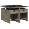 Ensemble à manger de jardin 5 pcs coussins gris résine tresséeCet ensemble de salle à manger de jardin est un excellent choix pour les repas en plein air ou pour vous détendre dans le jardin, dans l'arrière-cour ou sur la terrasse. Matériau durable : la résine tressée, également connue sous le nom de poly rotin, est un matériau synthétique solide et nécessitant peu d'entretien qui ressemble au rotin naturel. Il est léger, facile à nettoyer et couramment utilisé pour les meubles d'extérieur en raison de sa durabilité et de ses propriétés de résistance aux intempéries.Rangement compact : ces chaises sont dotées d'un dossier rabattable, ce qui permet de les ranger facilement sous la table. Une fois pliées, elles se rangent parfaitement sous la table, formant un cube peu encombrant.Expérience d'assise confortable : ce mobilier d'extérieur, doté de coussins épais, offre une expérience d'assise confortable.Housse amovible et lavable : ces coussins de siège sont dotés de housses amovibles pour un lavage et un entretien faciles. Les housses de coussin de chaise ont un rabat à l'arrière pour une fixation facile aux chaises.Dessus stable et facile à nettoyer : cette table de jardin est dotée d'un dessus en verre trempé robuste, durable et facile à nettoyer à l'aide d'un chiffon humide. Bon à savoir : Pour que vos meubles d'extérieur restent beaux, nous vous recommandons de les protéger avec une housse imperméable. Maximum 110 kg par siège. Soyez conscient du risque de feu ouvert et d'autres sources de forte chaleur à proximité de l'appareil.