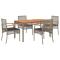 Ensemble à manger de jardin 5 pcs coussins gris résine tresséeCet ensemble de salle à manger de jardin est un excellent choix pour les repas en plein air ou pour vous détendre dans le jardin, dans l'arrière-cour ou sur la terrasse. Matériau durable : la résine tressée, également connue sous le nom de poly rotin, est un matériau synthétique solide et nécessitant peu d'entretien qui ressemble au rotin naturel. Il est léger, facile à nettoyer et couramment utilisé pour les meubles d'extérieur en raison de sa durabilité et de ses propriétés de résistance aux intempéries.Expérience d'assise confortable : ce mobilier d'extérieur, doté de coussins épais, offre une expérience d'assise confortable.Housse amovible et lavable : ces coussins de siège sont dotés de housses amovibles pour un lavage et un entretien faciles.Dessus stable et facile à nettoyer : cette table de jardin a un dessus en bois d'acacia robuste, durable et facile à nettoyer avec un chiffon humide.Cadre robuste et stable : le cadre en acier enduit de poudre assure la solidité et la stabilité du meuble de jardin pour une utilisation quotidienne à l'extérieur. Bon à savoir :Pour que vos meubles d'extérieur restent beaux, nous vous recommandons de les protéger avec une housse imperméable. Maximum 110 kg par siège.