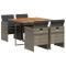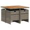 Ensemble à manger de jardin 5 pcs coussins gris résine tresséeCet ensemble de salle à manger de jardin est un excellent choix pour les repas en plein air ou pour vous détendre dans le jardin, dans l'arrière-cour ou sur la terrasse. Matériau durable : la résine tressée, également connue sous le nom de poly rotin, est un matériau synthétique solide et nécessitant peu d'entretien qui ressemble au rotin naturel. Il est léger, facile à nettoyer et couramment utilisé pour les meubles d'extérieur en raison de sa durabilité et de ses propriétés de résistance aux intempéries.Rangement compact : ces chaises sont dotées d'un dossier rabattable, ce qui permet de les ranger facilement sous la table. Une fois pliées, elles se rangent parfaitement sous la table, formant un cube peu encombrant. Expérience d'assise confortable : ce mobilier d'extérieur, doté de coussins épais, offre une expérience d'assise confortable.Housse amovible et lavable : ces coussins de siège sont dotés de housses amovibles pour un lavage et un entretien faciles.Dessus stable et facile à nettoyer : cette table de jardin a un dessus en bois d'acacia robuste, durable et facile à nettoyer avec un chiffon humide. Bon à savoir : Pour que vos meubles d'extérieur restent beaux, nous vous recommandons de les protéger avec une housse imperméable. Maximum 110 kg par siège. Soyez conscient du risque de feu ouvert et d'autres sources de forte chaleur à proximité de l'appareil.
