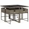 Ensemble à manger de jardin 5 pcs coussins gris résine tresséeCet ensemble de salle à manger de jardin est un excellent choix pour les repas en plein air ou pour vous détendre dans le jardin, dans l'arrière-cour ou sur la terrasse. Matériau durable : la résine tressée, également connue sous le nom de poly rotin, est un matériau synthétique solide et nécessitant peu d'entretien qui ressemble au rotin naturel. Il est léger, facile à nettoyer et couramment utilisé pour les meubles d'extérieur en raison de sa durabilité et de ses propriétés de résistance aux intempéries.Rangement compact : ces chaises sont dotées d'un dossier rabattable, ce qui permet de les ranger facilement sous la table. Une fois pliées, elles se rangent parfaitement sous la table, formant un cube peu encombrant.Expérience d'assise confortable : ce mobilier d'extérieur, doté de coussins épais, offre une expérience d'assise confortable.Housse amovible et lavable : ces coussins de siège sont dotés de housses amovibles pour un lavage et un entretien faciles. Les housses de coussin ont un rabat à l'arrière pour une fixation facile aux dossiers.Dessus stable et facile à nettoyer : cette table de jardin a un dessus en bois d'acacia robuste, durable et facile à nettoyer avec un chiffon humide. Bon à savoir :Pour que vos meubles d'extérieur restent beaux, nous vous recommandons de les protéger avec une housse imperméable. Maximum 110 kg par siège. Soyez conscient du risque de feu ouvert et d'autres sources de forte chaleur à proximité de l'appareil.