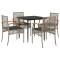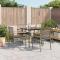 Ensemble à manger de jardin 5 pcs coussins gris résine tresséeCet ensemble de salle à manger de jardin est un excellent choix pour les repas en plein air ou pour vous détendre dans le jardin, dans l'arrière-cour ou sur la terrasse. Matériau durable : la résine tressée, également connue sous le nom de poly rotin, est un matériau synthétique solide et nécessitant peu d'entretien qui ressemble au rotin naturel. Il est léger, facile à nettoyer et couramment utilisé pour les meubles d'extérieur en raison de sa durabilité et de ses propriétés de résistance aux intempéries.Expérience d'assise confortable : ce mobilier d'extérieur, doté de coussins épais, offre une expérience d'assise confortable.Housse amovible et lavable : ces coussins de siège sont dotés de housses amovibles pour un lavage et un entretien faciles.Dessus en verre : le dessus de la table d'extérieur est fabriqué en verre trempé solide et durable, ce qui le rend facile à nettoyer avec un chiffon humide et ajoute une touche d'élégance à votre espace extérieur.Cadre robuste et stable : le cadre en acier enduit de poudre assure la solidité et la stabilité du meuble de jardin pour une utilisation quotidienne à l'extérieur. Bon à savoir :Pour que vos meubles d'extérieur restent beaux, nous vous recommandons de les protéger avec une housse imperméable. Maximum 110 kg par siège.