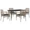 Ensemble à manger de jardin 5 pcs coussins gris résine tresséeCet ensemble de salle à manger de jardin est un excellent choix pour les repas en plein air ou pour vous détendre dans le jardin, dans l'arrière-cour ou sur la terrasse. Matériau durable : la résine tressée, également connue sous le nom de poly rotin, est un matériau synthétique solide et nécessitant peu d'entretien qui ressemble au rotin naturel. Il est léger, facile à nettoyer et couramment utilisé pour les meubles d'extérieur en raison de sa durabilité et de ses propriétés de résistance aux intempéries. Expérience d'assise confortable : ce mobilier d'extérieur, doté de coussins épais, offre une expérience d'assise confortable. Housse amovible et lavable : ces coussins de siège sont dotés de housses amovibles pour un lavage et un entretien faciles. Dessus en verre : le dessus de la table d'extérieur est fabriqué en verre trempé solide et durable, ce qui le rend facile à nettoyer avec un chiffon humide et ajoute une touche d'élégance à votre espace extérieur. Cadre robuste et stable : le cadre en acier enduit de poudre assure la solidité et la stabilité du meuble de jardin pour une utilisation quotidienne à l'extérieur. Bon à savoir : Pour que vos meubles d'extérieur restent beaux, nous vous recommandons de les protéger avec une housse imperméable. Maximum 110 kg par siège.