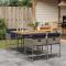 Ensemble à manger de jardin 5 pcs coussins gris résine tresséeCet ensemble de salle à manger de jardin est un excellent choix pour les repas en plein air ou pour vous détendre dans le jardin, dans l'arrière-cour ou sur la terrasse. Matériau durable : la résine tressée, également connue sous le nom de poly rotin, est un matériau synthétique solide et nécessitant peu d'entretien qui ressemble au rotin naturel. Il est léger, facile à nettoyer et couramment utilisé pour les meubles d'extérieur en raison de sa durabilité et de ses propriétés de résistance aux intempéries. Rangement compact : ces chaises sont dotées d'un dossier rabattable, ce qui permet de les ranger facilement sous la table. Une fois pliées, elles se rangent parfaitement sous la table, formant un cube peu encombrant. Expérience d'assise confortable : ce mobilier d'extérieur, doté de coussins épais, offre une expérience d'assise confortable. Housse amovible et lavable : ces coussins de siège sont dotés de housses amovibles pour un lavage et un entretien faciles. Les housses de coussin ont un rabat à l'arrière pour une fixation facile aux dossiers. Dessus stable et facile à nettoyer : cette table de jardin a un dessus en bois d'acacia robuste, durable et facile à nettoyer avec un chiffon humide. Bon à savoir : Pour que vos meubles d'extérieur restent beaux, nous vous recommandons de les protéger avec une housse imperméable.