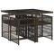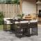 Ensemble à manger de jardin 5 pcs et coussins marron poly rotinCet ensemble de salle à manger de jardin est un excellent choix pour les repas en plein air ou pour vous détendre dans le jardin, l'arrière-cour ou le patio. Matériau durable : la résine tressée, également connue sous le nom de poly rotin, est un matériau synthétique solide et nécessitant peu d'entretien qui ressemble au rotin naturel. Il est léger, facile à nettoyer et couramment utilisé pour les meubles d'extérieur en raison de sa durabilité et de ses propriétés de résistance aux intempéries.Rangement compact : ces chaises sont dotées d'un dossier rabattable, ce qui permet de les ranger facilement sous la table. Une fois pliées, elles se rangent parfaitement sous la table, formant un cube peu encombrant.Expérience d'assise confortable : ce mobilier d'extérieur, doté de coussins épais, offre une expérience d'assise confortable.Housse amovible et lavable : ces coussins de siège sont dotés de housses amovibles pour un lavage et un entretien faciles. Les housses de coussin ont un rabat à l'arrière pour une fixation facile aux dossiers.Dessus en verre : le dessus de la table d'extérieur est fabriqué en verre trempé solide et durable, ce qui le rend facile à nettoyer avec un chiffon humide et ajoute une touche d'élégance à votre espace extérieur. Bon à savoir :Pour que vos meubles d'extérieur restent beaux, nous vous recommandons de les protéger avec une housse imperméable.