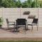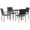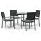 Ensemble à manger de jardin 5 pcs coussins résine tressée acierCet ensemble à manger de jardin, combinant à la fois style et fonctionnalité, est sûrement destiné à être la pièce maîtresse de votre jardin, terrasse et de tout autre espace de vie. Matériau résistant aux intempéries : la résine tressée, également connue sous le nom de rotin poly, résiste aux intempéries et est facile à nettoyer. Elle reste belle à l'extérieur pendant une longue période. Elle offre une excellente qualité, commodité et un aspect esthétique.Cadre robuste et stable : les cadres en acier rendent l'ensemble à manger robuste et stable pour une utilisation quotidienne à l'extérieur.Dessus de table pratique : le plateau lisse de la table à manger est en verre trempé facile à nettoyer avec un chiffon humide. De plus, il offre un excellent support pour contenir vos repas, boissons et autres objets décoratifs.Assise confortable : la chaise de salle à manger est conçue avec des accoudoirs pour vous offrir une expérience d'assise confortable. Le coussin de siège épais et rembourré offre un confort ultime pendant votre temps d'assise. Remarque :Pour que vos meubles d'extérieur restent beaux, nous vous recommandons de les protéger avec une housse imperméable. Maximum 110 kg par siège. Soyez conscient du risque de feu ouvert et d'autres sources de forte chaleur à proximité de l'appareil.