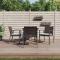 Ensemble à manger de jardin 5 pcs coussins résine tressée acierCet ensemble à manger de jardin, combinant à la fois style et fonctionnalité, est sûrement destiné à être la pièce maîtresse de votre jardin, terrasse et de tout autre espace de vie. Matériau résistant aux intempéries : la résine tressée, également connue sous le nom de rotin poly, résiste aux intempéries et est facile à nettoyer. Elle reste belle à l'extérieur pendant une longue période. Elle offre une excellente qualité, commodité et un aspect esthétique.Cadre robuste et stable : les cadres en acier rendent l'ensemble à manger robuste et stable pour une utilisation quotidienne à l'extérieur.Dessus de table pratique : le plateau lisse de la table à manger est en verre trempé facile à nettoyer avec un chiffon humide. De plus, il offre un excellent support pour contenir vos repas, boissons et autres objets décoratifs.Assise confortable : la chaise de salle à manger est conçue avec des accoudoirs pour vous offrir une expérience d'assise confortable. Le coussin de siège épais et rembourré offre un confort ultime pendant votre temps d'assise. Remarque :Pour que vos meubles d'extérieur restent beaux, nous vous recommandons de les protéger avec une housse imperméable. Maximum 110 kg par siège. Soyez conscient du risque de feu ouvert et d'autres sources de forte chaleur à proximité de l'appareil.