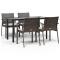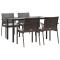 Ensemble à manger de jardin 5 pcs coussins résine tressée acierCet ensemble à manger de jardin, combinant à la fois style et fonctionnalité, est sûrement destiné à être la pièce maîtresse de votre jardin, terrasse et de tout autre espace de vie. Matériau résistant aux intempéries : la résine tressée, également connue sous le nom de rotin poly, résiste aux intempéries et est facile à nettoyer. Elle reste belle à l'extérieur pendant une longue période. Elle offre une excellente qualité, commodité et un aspect esthétique. Cadre robuste et stable : les cadres en acier rendent l'ensemble à manger robuste et stable pour une utilisation quotidienne à l'extérieur. Dessus de table pratique : le plateau lisse de la table à manger est en verre trempé facile à nettoyer avec un chiffon humide. De plus, il offre un excellent support pour contenir vos repas, boissons et autres objets décoratifs. Assise confortable : la chaise de salle à manger est conçue avec des accoudoirs pour vous offrir une expérience d'assise confortable. Le coussin de siège épais et rembourré offre un confort ultime pendant votre temps d'assise. Remarque : Pour que vos meubles d'extérieur restent beaux, nous vous recommandons de les protéger avec une housse imperméable. Maximum 110 kg par siège. Soyez conscient du risque de feux ouverts et d'autres sources de forte chaleur à proximité du produit.