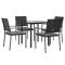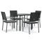 Ensemble à manger de jardin 5 pcs coussins résine tressée acierCet ensemble à manger de jardin, combinant à la fois style et fonctionnalité, est sûrement destiné à être la pièce maîtresse de votre jardin, terrasse et de tout autre espace de vie. Matériau résistant aux intempéries : la résine tressée, également connue sous le nom de rotin poly, résiste aux intempéries et est facile à nettoyer. Elle reste belle à l'extérieur pendant une longue période. Elle offre une excellente qualité, commodité et un aspect esthétique. Cadre robuste et stable : les cadres en acier rendent l'ensemble à manger robuste et stable pour une utilisation quotidienne à l'extérieur. Dessus de table pratique : le plateau lisse de la table à manger est en verre trempé facile à nettoyer avec un chiffon humide. De plus, il offre un excellent support pour contenir vos repas, boissons et autres objets décoratifs. Assise confortable : la chaise de salle à manger est conçue avec des accoudoirs pour vous offrir une expérience d'assise confortable. Le coussin de siège épais et rembourré offre un confort ultime pendant votre temps d'assise. Remarque : Pour que vos meubles d'extérieur restent beaux, nous vous recommandons de les protéger avec une housse imperméable. Maximum 110 kg par siège. Soyez conscient du risque de feux ouverts et d'autres sources de forte chaleur à proximité du produit.