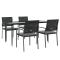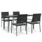Ensemble à manger de jardin 5 pcs coussins résine tressée acierCet ensemble à manger de jardin, combinant à la fois style et fonctionnalité, est sûrement destiné à être la pièce maîtresse de votre jardin, terrasse et de tout autre espace de vie. Matériau résistant aux intempéries : la résine tressée, également connue sous le nom de rotin poly, résiste aux intempéries et est facile à nettoyer. Elle reste belle à l'extérieur pendant une longue période. Elle offre une excellente qualité, commodité et un aspect esthétique. Cadre robuste et stable : les cadres en acier rendent l'ensemble à manger robuste et stable pour une utilisation quotidienne à l'extérieur. Dessus de table pratique : le plateau lisse de la table à manger est en verre trempé facile à nettoyer avec un chiffon humide. De plus, il offre un excellent support pour contenir vos repas, boissons et autres objets décoratifs. Assise confortable : la chaise de salle à manger est conçue avec des accoudoirs pour vous offrir une expérience d'assise confortable. Le coussin de siège épais et rembourré offre un confort ultime pendant votre temps d'assise. Remarque : Pour que vos meubles d'extérieur restent beaux, nous vous recommandons de les protéger avec une housse imperméable. Maximum 110 kg par siège. Soyez conscient du risque de feu ouvert et d'autres sources de forte chaleur à proximité de l'appareil.