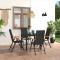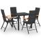 Ensemble à manger de jardin 5 pcs noir et marronCet ensemble à manger de jardin est un excellent choix pour votre jardin, patio ou terrasse. La chaise de jardin est en résine tressée, ce qui la rend résistante aux intempéries et durable. Les accoudoirs en WPC marron ajoutent au look élégant des chaises. La table dispose d'un dessus de table en WPC avec une ligne simple, facile à nettoyer et adapté à une utilisation en plein air. Les cadres en aluminium assurent également la stabilité et la robustesse de cet ensemble. Grâce à sa construction légère, cet ensemble de meubles et facile à déplacer. Remarque : nous vous recommandons de couvrir le mobilier pendant la pluie, la neige ou le gel. Remarque : afin de prolonger la durée de vie des meubles d'extérieur, nous vous recommandons de les protéger avec une housse imperméable. Maximum 110 kg par siège.