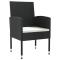 Ensemble à manger de jardin 5 pcs noir résine tressée et acierProfitez d'un bon repas ou d'un thé l'après-midi dans votre espace extérieur avec cet ensemble de salle à manger de jardin ! Ayant un design élégant, il deviendra le point central de votre jardin et de votre terrasse ! Matériau haut de gamme : la résine tressée est un matériau de résistance exceptionnelle et durable dans différentes conditions météorologiques. Cadre robuste : cette table et cette chaise de jardin sont construites avec un cadre en acier, ce qui assure robustesse et stabilité. Dessus de table pratique : le dessus lisse de la table à manger est en verre trempé, facile à nettoyer avec un chiffon humide. De plus, le dessus robuste est parfait pour placer des repas, des boissons et d'autres objets décoratifs. Expérience de siège confortable : les coussins de siège épais et amovibles sont inclus pour votre confort. Bon à savoir : Pour que vos meubles d'extérieur restent beaux, nous vous recommandons de les protéger avec une housse imperméable. Maximum 110 kg par siège. Soyez conscient du risque de feu ouvert et d'autres sources de forte chaleur à proximité de l'appareil.