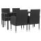 Ensemble à manger de jardin 5 pcs noir résine tressée et acierProfitez d'un bon repas ou d'un thé l'après-midi dans votre espace extérieur avec cet ensemble de salle à manger de jardin ! Ayant un design élégant, il deviendra le point central de votre jardin et de votre terrasse ! Matériau haut de gamme : la résine tressée est un matériau de résistance exceptionnelle et durable dans différentes conditions météorologiques. Cadre robuste : cette table et cette chaise de jardin sont construites avec un cadre en acier, ce qui assure robustesse et stabilité. Dessus de table pratique : le dessus lisse de la table à manger est en verre trempé, facile à nettoyer avec un chiffon humide. De plus, le dessus robuste est parfait pour placer des repas, des boissons et d'autres objets décoratifs. Expérience de siège confortable : les coussins de siège épais et amovibles sont inclus pour votre confort. Bon à savoir : Pour que vos meubles d'extérieur restent beaux, nous vous recommandons de les protéger avec une housse imperméable. Maximum 110 kg par siège. Soyez conscient du risque de feu ouvert et d'autres sources de forte chaleur à proximité de l'appareil.