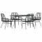 Ensemble à manger de jardin 5 pcs noir résine tressée verreCet ensemble de salle à manger de jardin est un excellent choix pour les repas en plein air ou pour vous détendre dans le jardin, dans l'arrière-cour ou sur la terrasse. Matériau durable : la résine tressée, également connue sous le nom de poly rotin, est un matériau synthétique solide et nécessitant peu d'entretien qui ressemble au rotin naturel. Elle est légère, facile à nettoyer et couramment utilisée pour les meubles d'extérieur en raison de sa durabilité et de ses propriétés de résistance aux intempéries. Cadre robuste et stable : le cadre en acier enduit de poudre est solide, stable, durable et résistant à la corrosion et aux intempéries, ce qui garantit des performances durables. Dossier et accoudoir pratiques : cette chaise de jardin est dotée d'un dossier et de deux accoudoirs qui offrent un soutien et un confort optimaux aux utilisateurs. Dessus en verre : le dessus de la table d'extérieur est fabriqué en verre trempé solide et durable, ce qui le rend facile à nettoyer avec un chiffon humide et ajoute une touche d'élégance à votre espace extérieur. Bon à savoir : Pour que vos meubles d'extérieur restent beaux, nous vous recommandons de les protéger avec une housse imperméable. Maximum 110 kg par siège.