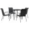 Ensemble à manger de jardin 5 pcs noir textilène et acierProfitez d'un bon repas ou d'un thé l'après-midi dans votre espace extérieur avec cet ensemble de salle à manger de jardin ! Ayant un design élégant, il deviendra le point central de votre jardin et de votre terrasse ! Cadre stable : les fauteuils et la table ont une construction en acier revêtu de poudre, ce qui les rend robustes et stables.Matériau durable : grâce au tissu textilène résistant avec rembourrage, ces chaises d'extérieur sont très confortables, résistantes aux intempéries et faciles à nettoyer.Dessus de table robustes : le dessus de table est en verre trempé, ce qui le rend facile à nettoyer. De plus, le dessus de table est parfait pour placer des collations, des boissons, des vases, des bols de fruits ou d'autres objets décoratifs.Expérience d'assise confortable : conçu avec un dossier et des accoudoirs incurvés, le fauteuil de jardin a une forme plus ergonomique pour un maximum de confort. Bon à savoir :Pour que vos meubles d'extérieur restent beaux, nous vous recommandons de les protéger avec une housse imperméable.
