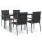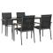 Ensemble à manger de jardin 5 pcs noir textilène et acierDétendez-vous et profitez d'un bon thé de l'après-midi ou de n'importe quel repas avec votre famille et vos amis autour de cet ensemble de salle à manger de jardin ! Matériau durable : le tissu en textilène permet à l'air de circuler librement à travers lui tout en étant résistant aux rayons UV. Le textilène est donc idéal pour les temps chauds. En tant que matériau durable et solide, il est très résistant aux déchirures, aux perforations et aux moisissures. Cadre robuste et stable : les cadres en acier rendent l'ensemble à manger robuste et stable pour une utilisation quotidienne à l'extérieur. Dessus de table pratique : le plateau lisse de la table à manger est en verre trempé facile à nettoyer avec un chiffon humide. De plus, il offre un excellent support pour contenir vos repas, boissons et autres objets décoratifs. Assise confortable : la chaise à manger est conçue avec un dossier et des accoudoirs pour vous offrir une expérience d'assise confortable. Remarque : Pour que vos meubles d'extérieur restent beaux, nous vous recommandons de les protéger avec une housse imperméable. Maximum 110 kg par siège.