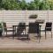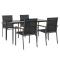 Ensemble à manger de jardin 5 pcs noir textilène et acierDétendez-vous et profitez d'un bon thé de l'après-midi ou de n'importe quel repas avec votre famille et vos amis autour de cet ensemble de salle à manger de jardin ! Matériau durable : le tissu en textilène permet à l'air de circuler librement à travers lui tout en étant résistant aux rayons UV. Le textilène est donc idéal pour les temps chauds. En tant que matériau durable et solide, il est très résistant aux déchirures, aux perforations et aux moisissures. Cadre robuste et stable : les cadres en acier rendent l'ensemble à manger robuste et stable pour une utilisation quotidienne à l'extérieur. Dessus de table pratique : le plateau lisse de la table à manger est en verre trempé facile à nettoyer avec un chiffon humide. De plus, il offre un excellent support pour contenir vos repas, boissons et autres objets décoratifs. Assise confortable : la chaise à manger est conçue avec un dossier et des accoudoirs pour vous offrir une expérience d'assise confortable. Remarque : Pour que vos meubles d'extérieur restent beaux, nous vous recommandons de les protéger avec une housse imperméable. Maximum 110 kg par siège.