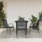 Ensemble à manger de jardin 5 pcs noir textilène et acierProfitez d'un bon repas ou d'un thé l'après-midi dans votre espace extérieur avec cet ensemble de salle à manger de jardin ! Ayant un design élégant, il deviendra le point central de votre jardin et de votre terrasse ! Cadre stable : les fauteuils et la table ont une construction en acier revêtu de poudre, ce qui les rend robustes et stables. Matériau durable : grâce au tissu textilène résistant, ces chaises d'extérieur sont résistantes aux intempéries et faciles à nettoyer. Dessus de table robustes : le dessus de table est en verre trempé, ce qui le rend facile à nettoyer. De plus, le dessus de table est parfait pour placer des collations, des boissons, des vases, des bols de fruits ou d'autres objets décoratifs. Expérience d'assise confortable : conçu avec un dossier et des accoudoirs incurvés, le fauteuil de jardin a une forme plus ergonomique pour un maximum de confort. Bon à savoir : Pour que vos meubles d'extérieur restent beaux, nous vous recommandons de les protéger avec une housse imperméable. ,