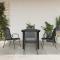 Ensemble à manger de jardin 5 pcs noir textilène et acierProfitez d'un bon repas ou d'un thé l'après-midi dans votre espace extérieur avec cet ensemble de salle à manger de jardin ! Ayant un design élégant, il deviendra le point central de votre jardin et de votre terrasse ! Cadre stable : les fauteuils et la table ont une construction en acier revêtu de poudre, ce qui les rend robustes et stables. Matériau durable : grâce au tissu textilène résistant, ces chaises d'extérieur sont résistantes aux intempéries et faciles à nettoyer. Dessus de table robustes : le dessus de table est en verre trempé, ce qui le rend facile à nettoyer. De plus, le dessus de table est parfait pour placer des collations, des boissons, des vases, des bols de fruits ou d'autres objets décoratifs. Expérience d'assise confortable : conçu avec un dossier et des accoudoirs incurvés, le fauteuil de jardin a une forme plus ergonomique pour un maximum de confort. Bon à savoir : Pour que vos meubles d'extérieur restent beaux, nous vous recommandons de les protéger avec une housse imperméable.