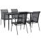 Ensemble à manger de jardin 5 pcs noir textilène et acierProfitez d'un bon repas ou d'un thé l'après-midi dans votre espace extérieur avec cet ensemble de salle à manger de jardin ! Ayant un design élégant, il deviendra le point central de votre jardin et de votre terrasse ! Cadre stable : les fauteuils et la table ont une construction en acier revêtu de poudre, ce qui les rend robustes et stables. Matériau durable : grâce au tissu textilène résistant, ces chaises d'extérieur sont résistantes aux intempéries et faciles à nettoyer. Dessus de table robustes : le dessus de table est en verre trempé, ce qui le rend facile à nettoyer. De plus, le dessus de table est parfait pour placer des collations, des boissons, des vases, des bols de fruits ou d'autres objets décoratifs. Expérience d'assise confortable : conçu avec un dossier et des accoudoirs incurvés, le fauteuil de jardin a une forme plus ergonomique pour un maximum de confort. Bon à savoir : Pour que vos meubles d'extérieur restent beaux, nous vous recommandons de les protéger avec une housse imperméable.