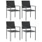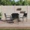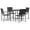 Ensemble à manger de jardin 5 pcs résine tressée acierCet ensemble à manger de jardin, combinant à la fois style et fonctionnalité, est sûrement destiné à être la pièce maîtresse de votre jardin, terrasse et de tout autre espace de vie. Matériau résistant aux intempéries : la résine tressée, également connue sous le nom de rotin poly, résiste aux intempéries et est facile à nettoyer. Elle reste belle à l'extérieur pendant une longue période. Elle offre une excellente qualité, commodité et un aspect esthétique.Cadre robuste et stable : les cadres en acier rendent l'ensemble à manger robuste et stable pour une utilisation quotidienne à l'extérieur.Dessus de table pratique : le plateau lisse de la table à manger est en verre trempé facile à nettoyer avec un chiffon humide. De plus, il offre un excellent support pour contenir vos repas, boissons et autres objets décoratifs.Assise confortable : la chaise à manger est conçue avec des accoudoirs pour vous offrir une expérience d'assise confortable. Remarque :Pour que vos meubles d'extérieur restent beaux, nous vous recommandons de les protéger avec une housse imperméable. Maximum 110 kg par siège.