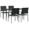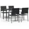 Ensemble à manger de jardin 5 pcs résine tressée acierCet ensemble à manger de jardin, combinant à la fois style et fonctionnalité, est sûrement destiné à être la pièce maîtresse de votre jardin, terrasse et de tout autre espace de vie. Matériau résistant aux intempéries : la résine tressée, également connue sous le nom de rotin poly, résiste aux intempéries et est facile à nettoyer. Elle reste belle à l'extérieur pendant une longue période. Elle offre une excellente qualité, commodité et un aspect esthétique. Cadre robuste et stable : les cadres en acier rendent l'ensemble à manger robuste et stable pour une utilisation quotidienne à l'extérieur. Dessus de table pratique : le plateau lisse de la table à manger est en verre trempé facile à nettoyer avec un chiffon humide. De plus, il offre un excellent support pour contenir vos repas, boissons et autres objets décoratifs. Assise confortable : la chaise à manger est conçue avec des accoudoirs pour vous offrir une expérience d'assise confortable. Remarque : Pour que vos meubles d'extérieur restent beaux, nous vous recommandons de les protéger avec une housse imperméable. Maximum 110 kg par siège.