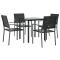 Ensemble à manger de jardin 5 pcs résine tressée acierCet ensemble à manger de jardin, combinant à la fois style et fonctionnalité, est sûrement destiné à être la pièce maîtresse de votre jardin, terrasse et de tout autre espace de vie. Matériau résistant aux intempéries : la résine tressée, également connue sous le nom de rotin poly, résiste aux intempéries et est facile à nettoyer. Elle reste belle à l'extérieur pendant une longue période. Elle offre une excellente qualité, commodité et un aspect esthétique. Cadre robuste et stable : les cadres en acier rendent l'ensemble à manger robuste et stable pour une utilisation quotidienne à l'extérieur. Dessus de table pratique : le plateau lisse de la table à manger est en verre trempé facile à nettoyer avec un chiffon humide. De plus, il offre un excellent support pour contenir vos repas, boissons et autres objets décoratifs. Assise confortable : la chaise à manger est conçue avec des accoudoirs pour vous offrir une expérience d'assise confortable. Remarque : Pour que vos meubles d'extérieur restent beaux, nous vous recommandons de les protéger avec une housse imperméable. Maximum 110 kg par siège.