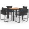 Ensemble à manger de jardin 5pcs PVC résine tressée noir marronCet ensemble à manger de jardin est un excellent choix pour votre jardin, patio ou terrasse. La chaise de jardin est en rotin PVC et cadre en acier enduit de poudre, ce qui la rend durable et stable. La table est dotée d'un cadre en aluminium et d'un dessus de table en WPC. Elle est facile à nettoyer et adaptée pour une utilisation à l'extérieur. Grâce à sa construction légère, cet ensemble de meubles d'extérieur est facile à déplacer. De plus, le coussin de dossier est recouvert de tissu solide et ajoute un confort d'assise supplémentaire à la chaise. Remarque : nous vous recommandons de couvrir le mobilier pendant la pluie, la neige ou le gel.