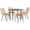 Ensemble à manger de jardin 5pcs Résine tresséeCréez une esthétique convaincante et uniforme dans votre espace extérieur avec cet ensemble de salle à manger de jardin ! Matériau durable : la résine tressée, également connue sous le nom de rotin poly, résiste aux intempéries et est facile à nettoyer. Elle reste belle à l'extérieur pendant une longue période. Elle offre une excellente qualité, commodité et un aspect esthétique.Cadre robuste et stable : les cadres en acier rendent l'ensemble de terrasse robuste et stable pour une utilisation quotidienne à l'extérieur.Dessus de table pratique : le dessus lisse de la table de salle à manger est en verre trempé, facile à nettoyer avec un chiffon humide. De plus, le dessus robuste est parfait pour placer des repas, des boissons et d'autres objets décoratifs.Assise confortable : la chaise de salle à manger est conçue avec un dossier pour vous offrir une expérience d'assise confortable.Bouchons de pieds pratiques : l'ensemble de bistro est livré avec des bouchons de pieds qui l'aident à se tenir plus fermement au sol. Remarque :Afin de prolonger la durée de vie de votre mobilier d'extérieur, nous vous recommandons de le protéger avec une housse imperméable.Chaque produit est livré avec un manuel de montage dans la boîte pour un montage facile. Maximum 110 kg par siège.