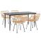 Ensemble à manger de jardin 5pcs Résine tresséeCréez une esthétique convaincante et uniforme dans votre espace extérieur avec cet ensemble de salle à manger de jardin ! Matériau durable : la résine tressée, également connue sous le nom de rotin poly, résiste aux intempéries et est facile à nettoyer. Elle reste belle à l'extérieur pendant une longue période. Elle offre une excellente qualité, commodité et un aspect esthétique. Cadre robuste et stable : les cadres en acier rendent l'ensemble de terrasse robuste et stable pour une utilisation quotidienne à l'extérieur. Dessus de table pratique : le dessus lisse de la table de salle à manger est en verre trempé, facile à nettoyer avec un chiffon humide. De plus, le dessus robuste est parfait pour placer des repas, des boissons et d'autres objets décoratifs. Assise confortable : la chaise de salle à manger est conçue avec un dossier et des accoudoirs pour vous offrir une expérience d'assise confortable. Bouchons de pieds pratiques : l'ensemble de bistro est livré avec des bouchons de pieds qui l'aident à se tenir plus fermement au sol. Remarque : Afin de prolonger la durée de vie de votre mobilier d'extérieur, nous vous recommandons de le protéger avec une housse imperméable. Chaque produit est livré avec un manuel de montage dans la boîte pour un montage facile. Maximum 110 kg par siège.