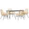 Ensemble à manger jardin 5pcs marron poly rotin verreCet ensemble de salle à manger de jardin est un excellent choix pour les repas en plein air ou pour vous détendre dans le jardin, dans l'arrière-cour ou sur la terrasse. Matériau durable : la résine tressée, également connue sous le nom de poly rotin, est un matériau synthétique solide et nécessitant peu d'entretien qui ressemble au rotin naturel. Elle est légère, facile à nettoyer et couramment utilisée pour les meubles d'extérieur en raison de sa durabilité et de ses propriétés de résistance aux intempéries. Cadre robuste et stable : le cadre en acier enduit de poudre est solide, stable, durable et résistant à la corrosion et aux intempéries, ce qui garantit des performances durables. Dossier et accoudoir pratiques : cette chaise de jardin est dotée d'un dossier et de deux accoudoirs qui offrent un soutien et un confort optimaux aux utilisateurs. Dessus en verre : le dessus de la table d'extérieur est fabriqué en verre trempé solide et durable, ce qui le rend facile à nettoyer avec un chiffon humide et ajoute une touche d'élégance à votre espace extérieur. Bon à savoir : Pour que vos meubles d'extérieur restent beaux, nous vous recommandons de les protéger avec une housse imperméable. Maximum 110 kg par siège.