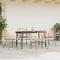Ensemble à manger jardin 5pcs marron poly rotin verreCet ensemble de salle à manger de jardin est un excellent choix pour les repas en plein air ou pour vous détendre dans le jardin, dans l'arrière-cour ou sur la terrasse. Matériau durable : la résine tressée, également connue sous le nom de poly rotin, est un matériau synthétique solide et nécessitant peu d'entretien qui ressemble au rotin naturel. Elle est légère, facile à nettoyer et couramment utilisée pour les meubles d'extérieur en raison de sa durabilité et de ses propriétés de résistance aux intempéries. Cadre robuste et stable : le cadre en acier enduit de poudre est solide, stable, durable et résistant à la corrosion et aux intempéries, ce qui garantit des performances durables. Dossier et accoudoir pratiques : cette chaise de jardin est dotée d'un dossier et de deux accoudoirs qui offrent un soutien et un confort optimaux aux utilisateurs. Dessus en verre : le dessus de la table d'extérieur est fabriqué en verre trempé solide et durable, ce qui le rend facile à nettoyer avec un chiffon humide et ajoute une touche d'élégance à votre espace extérieur. Bon à savoir : Pour que vos meubles d'extérieur restent beaux, nous vous recommandons de les protéger avec une housse imperméable. Maximum 110 kg par siège.