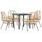 Ensemble à manger jardin 5pcs marron poly rotin verreCet ensemble de salle à manger de jardin est un excellent choix pour les repas en plein air ou pour vous détendre dans le jardin, dans l'arrière-cour ou sur la terrasse. Matériau durable : la résine tressée, également connue sous le nom de poly rotin, est un matériau synthétique solide et nécessitant peu d'entretien qui ressemble au rotin naturel. Elle est légère, facile à nettoyer et couramment utilisée pour les meubles d'extérieur en raison de sa durabilité et de ses propriétés de résistance aux intempéries. Cadre robuste et stable : le cadre en acier enduit de poudre est solide, stable, durable et résistant à la corrosion et aux intempéries, ce qui garantit des performances durables. Dossier et accoudoir pratiques : cette chaise de jardin est dotée d'un dossier et de deux accoudoirs qui offrent un soutien et un confort optimaux aux utilisateurs. Dessus en verre : le dessus de la table d'extérieur est fabriqué en verre trempé solide et durable, ce qui le rend facile à nettoyer avec un chiffon humide et ajoute une touche d'élégance à votre espace extérieur. Bon à savoir : Pour que vos meubles d'extérieur restent beaux, nous vous recommandons de les protéger avec une housse imperméable. Maximum 110 kg par siège.