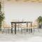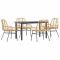 Ensemble à manger jardin 5pcs marron poly rotin verreCet ensemble de salle à manger de jardin est un excellent choix pour les repas en plein air ou pour vous détendre dans le jardin, dans l'arrière-cour ou sur la terrasse. Matériau durable : la résine tressée, également connue sous le nom de poly rotin, est un matériau synthétique solide et nécessitant peu d'entretien qui ressemble au rotin naturel. Elle est légère, facile à nettoyer et couramment utilisée pour les meubles d'extérieur en raison de sa durabilité et de ses propriétés de résistance aux intempéries. Cadre robuste et stable : le cadre en acier enduit de poudre est solide, stable, durable et résistant à la corrosion et aux intempéries, ce qui garantit des performances durables. Dossier et accoudoir pratiques : cette chaise de jardin est dotée d'un dossier et de deux accoudoirs qui offrent un soutien et un confort optimaux aux utilisateurs. Dessus en verre : le dessus de la table d'extérieur est fabriqué en verre trempé solide et durable, ce qui le rend facile à nettoyer avec un chiffon humide et ajoute une touche d'élégance à votre espace extérieur. Bon à savoir : Pour que vos meubles d'extérieur restent beaux, nous vous recommandons de les protéger avec une housse imperméable. Maximum 110 kg par siège.