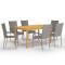Ensemble à manger de jardin 7 pcs GrisCréez une esthétique convaincante et uniforme dans votre espace extérieur avec cet ensemble de salle à manger de jardin ! La table de salle à manger est en bois d'acacia massif avec une finition à l'huile, ce qui la rend stable, durable et facile à entretenir. Dotées d'un cadre en acier enduit de poudre recouvert de résine tressée résistante aux intempéries, ces chaises sont robustes et faciles à nettoyer. Les chaises d'extérieur sont légères et peuvent être empilées pour gagner de la place lorsqu'elles ne sont pas utilisées. Remarque importante : Nous vous recommandons de couvrir l'ensemble de salle à manger pendant la pluie, la neige et le gel pour une utilisation durable. Maximum 110 kg par siège.
