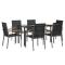 Ensemble à manger de jardin 7 pcs noir textilène et acierDétendez-vous et profitez d'un bon thé de l'après-midi ou de n'importe quel repas avec votre famille et vos amis autour de cet ensemble de salle à manger de jardin ! Matériau durable : le tissu en textilène permet à l'air de circuler librement à travers lui tout en étant résistant aux rayons UV. Le textilène est donc idéal pour les temps chauds. En tant que matériau durable et solide, il est très résistant aux déchirures, aux perforations et aux moisissures. Cadre robuste et stable : les cadres en acier rendent l'ensemble à manger robuste et stable pour une utilisation quotidienne à l'extérieur. Dessus de table pratique : le plateau lisse de la table à manger est en verre trempé facile à nettoyer avec un chiffon humide. De plus, il offre un excellent support pour contenir vos repas, boissons et autres objets décoratifs. Assise confortable : la chaise à manger est conçue avec un dossier et des accoudoirs pour vous offrir une expérience d'assise confortable. Remarque : Pour que vos meubles d'extérieur restent beaux, nous vous recommandons de les protéger avec une housse imperméable. Maximum 110 kg par siège.
