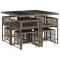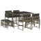 Ensemble à manger de jardin 9 pcs coussins gris résine tresséeCet ensemble de salle à manger de jardin est un excellent choix pour les repas en plein air ou pour vous détendre dans le jardin, dans l'arrière-cour ou sur la terrasse. Matériau durable : la résine tressée, également connue sous le nom de poly rotin, est un matériau synthétique solide et nécessitant peu d'entretien qui ressemble au rotin naturel. Il est léger, facile à nettoyer et couramment utilisé pour les meubles d'extérieur en raison de sa durabilité et de ses propriétés de résistance aux intempéries.Rangement compact : ces chaises sont dotées d'un dossier rabattable, ce qui permet de les ranger facilement sous la table. Une fois pliées, elles se rangent parfaitement sous la table, formant un cube peu encombrant. De plus, les tabourets peuvent également être rangés sous les chaises, maximisant encore davantage l'efficacité de l'espace.Expérience d'assise confortable : ce mobilier d'extérieur, doté de coussins épais, offre une expérience d'assise confortable.Housse amovible et lavable : ces coussins de siège sont dotés de housses amovibles pour un lavage et un entretien faciles. Les housses de coussin ont un rabat à l'arrière pour une fixation facile aux dossiers.Dessus en verre : le dessus de la table d'extérieur est fabriqué en verre trempé solide et durable, ce qui le rend facile à nettoyer avec un chiffon humide et ajoute une touche d'élégance à votre espace extérieur. Bon à savoir :Pour que vos meubles d'extérieur restent beaux, nous vous recommandons de les protéger avec une housse imperméable. Maximum 110 kg par siège.